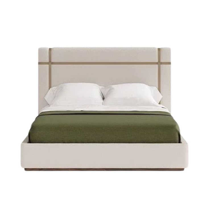 Experience the epitome of modern luxury and serene comfort with the Super King Bed – Skipper, a sculptural statement piece that transforms your bedroom into a tranquil haven. Upholstered in soft cream bouclé, the gently curved wingback headboard features contrasting trim that adds subtle sophistication. Clean lines and a minimalist silhouette are elevated by sleek recessed metal legs, creating a floating effect that feels both airy and refined. The upholstered platform base includes a supportive slatted system, offering optimal mattress support without the need for a box spring.