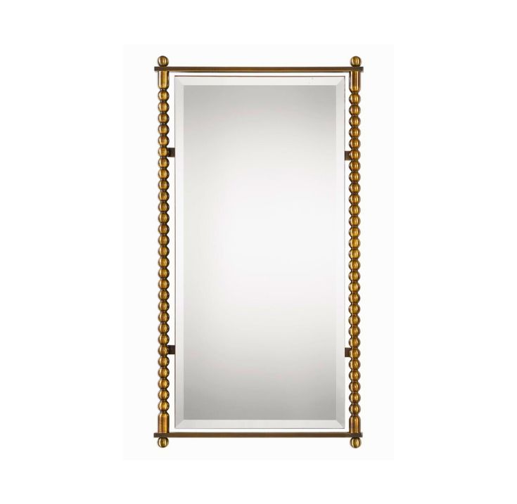 The Beaumont Mirror is a refined accent piece that blends classic elegance with modern versatility. Its brass or antiqued brass frame features distinctive ball or bobbin detailing along the sides, adding subtle texture and sculptural interest. The clean-lined rectangular mirror enhances light and space, making this piece a graceful focal point in bedrooms, hallways, dining areas, or entryways. With its warm metallic finish and timeless silhouette, the Beaumont Mirror offers understated glamour that complements both traditional and contemporary interiors.
