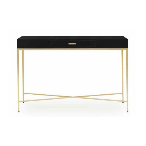 • Two-tone finish with black lacquer top and gold metal legs