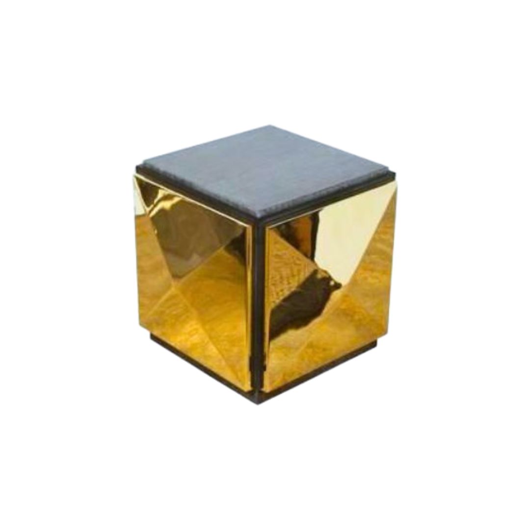 This piece elegantly combines natural stone with polished metal, offering a compact yet expressive accent for curated interiors.