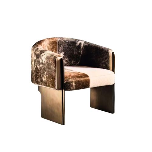 The Channel-Back Barrel Chair is a sculptural composition that pays homage to the sleek minimalism of Milo Baughman’s iconic design language. Its curved barrel back offers ergonomic comfort, while vertical channeling along the backrest introduces rhythm, texture, and tailored elegance. Upholstered in a luxurious combination of genuine cowhide and ivory fabric, the chair creates a striking visual contrast—balancing organic warmth with refined softness. A streamlined plinth base grounds the silhouette with architectural clarity, making this piece a bold yet versatile accent for contemporary interiors.