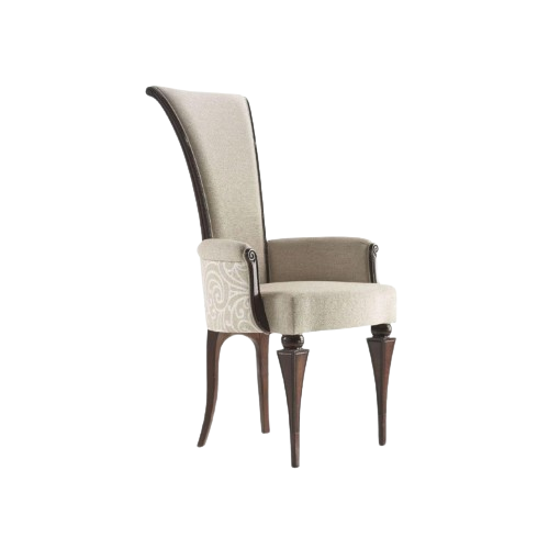 The Classic Upholstered Dining Chair with Curved Armrests is a refined seating piece that embodies traditional elegance and enduring comfort. Its fully upholstered seat and back—likely in a light-colored fabric—offer a soft, supportive experience, while the shaped dark stained wood frame introduces warmth and definition. Curved upholstered armrests enhance both comfort and silhouette, creating a graceful profile suited to formal dining rooms, intimate living spaces, or bedroom corners. With its timeless lines and versatile styling, this chair serves beautifully as a dining or accent piece in classic interiors.