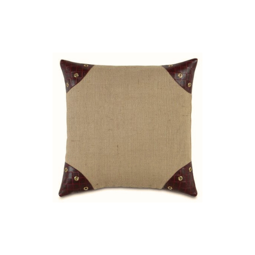 The Neutral Fabric Pillow with Dark Red Leather Corner Accents is a striking blend of softness and structure, designed to elevate interiors with understated contrast. Crafted from textured beige or light brown fabric, the surface offers a natural, tactile base. Each corner is accented with dark red genuine leather, detailed with silver-tone studs for a bold, tailored finish. The square shape ensures versatile styling, while the included insert provides ready-to-style comfort. Ideal for rustic, masculine, or transitional spaces, this pillow balances warmth with edge and craftsmanship.