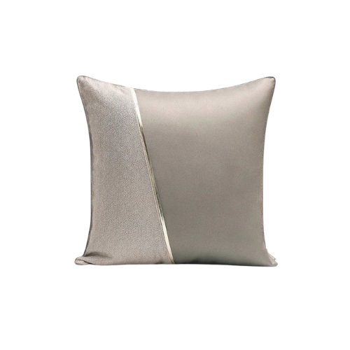 The Silver Satin Throw Pillow with Gold Accent Strip is a refined decorative piece that brings tonal elegance and subtle glamour to any interior. Featuring a diagonal color block design, the pillow pairs light silver and dark silver panels in a sleek composition. A thin gold strip acts as a metallic accent, adding contrast and sophistication. Crafted from smooth, lustrous fabric with a satin finish, the surface reflects light beautifully, enhancing its sculptural appeal. The standard square shape ensures versatile styling across sofas, beds, or accent chairs. Ideal for modern, glam, or transitional spaces, this pillow offers understated luxury and visual clarity.