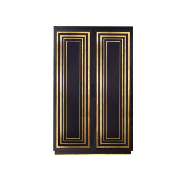 The Lacquered Linen Wardrobe is a glamorous and functional storage piece that brings Art Deco-inspired sophistication to any interior. Its high-gloss black or white lacquered finish creates a sleek and luminous surface, while geometric or Greek key detailing in brass or gold leaf adds richness and visual texture. With ample internal space and optional adjustable shelves, this wardrobe is ideal for storing linens, clothing, or household essentials. Designed to serve as both a practical solution and a bold statement piece, it enhances bedrooms, living rooms, or hallways with timeless elegance.