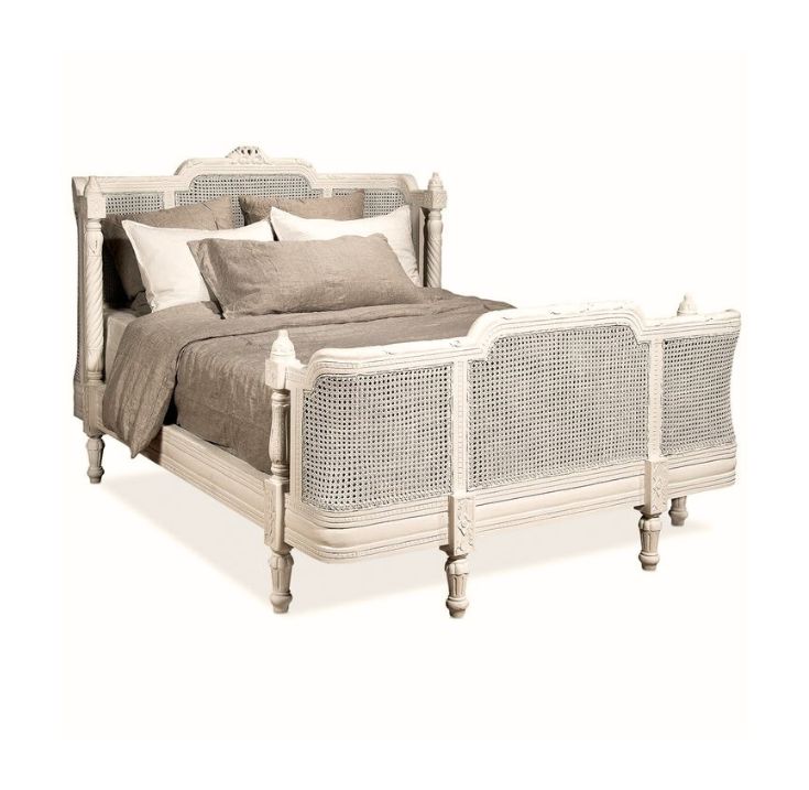 • Headboard & Footboard: Woven natural rattan cane in classic corbeille shape