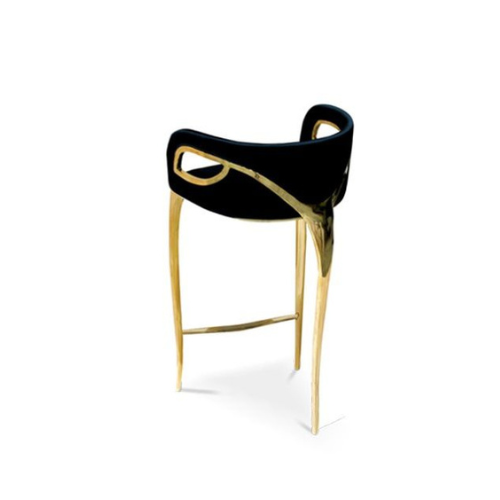 The Gold-Accented Velvet Barstool is a sophisticated seating piece that blends plush comfort with sculptural elegance. Upholstered in rich golden-brown velvet, the seat and backrest offer a soft, inviting texture, while vertical channel stitching adds depth and visual rhythm. The curved backrest enhances ergonomic support and creates a graceful silhouette. Glossy black legs provide a sleek foundation, accented with gold metal caps and a coordinating gold footrest bar for added glamour and stability. Designed for bar counters or high tables, this barstool embodies contemporary luxury with bold contrast and refined detailing.