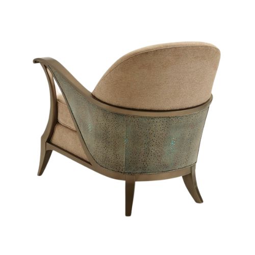The Modern Accent Chair is a sculptural composition that blends contemporary elegance with tactile contrast. Its curved silhouette offers a refined and eye-catching profile, while the two-tone upholstery introduces visual depth—featuring a soft, light-toned fabric on the inner cushions and a textured outer shell, possibly in faux shagreen. Angled arms provide relaxed support, and tapered legs lend architectural clarity and grounded stability. Finished in a versatile neutral palette, this piece integrates seamlessly into a range of interiors—from minimalist lounges to curated workspaces—serving as a graceful accent with understated sophistication.