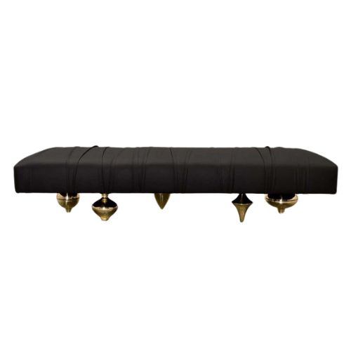 The Pezzo 1 Backless Settee is a sculptural composition that celebrates modern Italian artistry and material contrast. Designed by Il Pezzo Mancante, its geometric base—crafted from polished brass or bronze—features teardrop and pointed forms that evoke a sense of movement and architectural rhythm. The upholstered top, available in soft velvet or textured fabric, is elegantly pleated to introduce surface depth and tactile richness. With its bold silhouette and refined detailing, this piece serves as a commanding accent for curated living rooms, galleries, or transitional spaces.