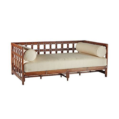 • Daybed settee silhouette with open-weave rattan or bamboo frame