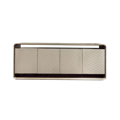 The Buffet with Textured Door Panels and Open Metal Frame is a sculptural storage piece that blends modern clarity with luxurious detail. Its four-door configuration features tactile panels—suggested in embossed leather or textured lacquer—that offer visual rhythm and artisanal depth. The brushed or polished metal frame, in bronze or champagne tones, introduces elegance and structural lightness. An open top and base create a sense of transparency and airiness, balancing the richness of the materials. Designed for dining rooms, living spaces, or entryways, this buffet serves as both a refined focal point and a functional anchor.