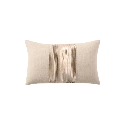 The Neutral Sand Lumbar Pillow with Pleated Center Panel is a quietly elegant accent piece that blends subtle texture with tailored detail. Crafted in a soft sand-toned fabric with a visible weave, the surface offers natural warmth and understated sophistication. A series of vertical pleats runs through the center, adding gentle structure and visual rhythm. Its rectangular shape makes it ideal for lumbar support or layered styling across beds, benches, or accent chairs. Perfect for minimalist, transitional, or coastal interiors, this pillow brings softness, balance, and refined simplicity.
