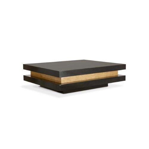 The Shelton Coffee Table is a sculptural composition that blends architectural clarity with modern elegance. Its square silhouette offers a generous surface area, while the layered design introduces depth and visual rhythm through distinct horizontal sections. The two-tone finish—featuring a dark outer layer in black lacquer and a lighter center in antique brass—creates a striking contrast that enhances the table’s geometric presence. With clean lines and a low-profile stance, this piece evokes contemporary sophistication, making it a dramatic focal point for living rooms, salons, or curated interiors.