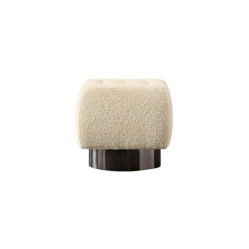 Upholstered in soft, bumpy ivory bouclé, its compact cube shape features a subtly indented top for added visual depth. A sleek gold or brass metal base adds a refined contrast, making it both functional and decorative. Lightweight and easy to move, this pouf is perfect for layering into living rooms, bedrooms, or dressing areas as a seat, footrest, or styling surface.