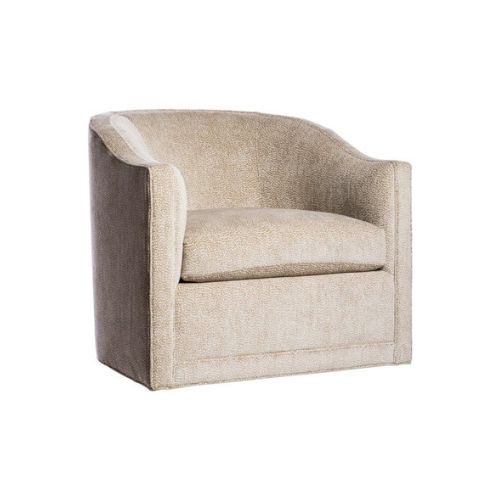 Its gently curved silhouette is upholstered in soft, neutral-toned linen or performance fabric, creating a clean and inviting presence. Subtle piping along the edges adds tailored definition, while the swivel base introduces versatility and ease. Crafted with comfort and sophistication in mind, this chair is ideal for relaxed seating in living rooms, bedrooms, or lounges.