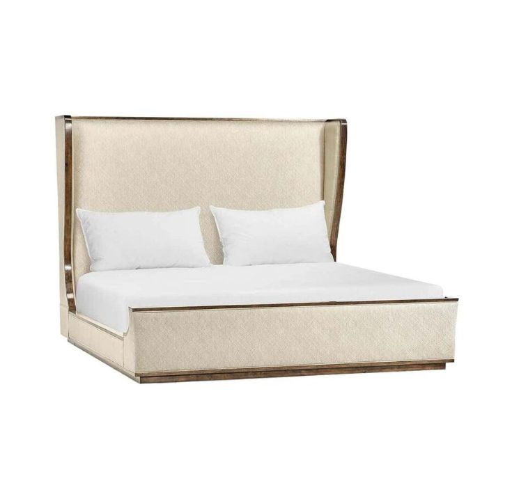 • Headboard: Wingback silhouette with contrasting trim